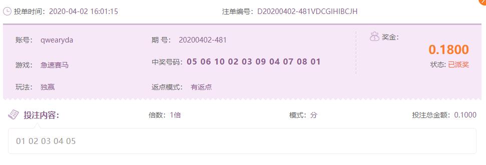 [VIPtou]viptou[/VIPtou]急速赛马独赢看好的出来了,希望下次可以继续的有好运气了。