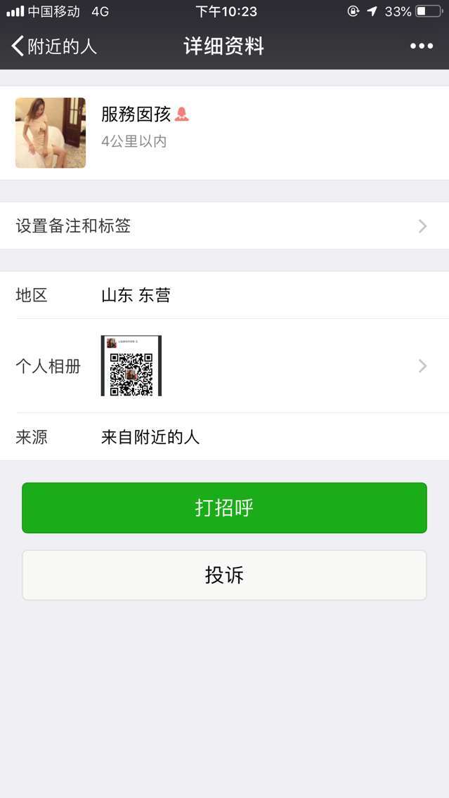 以上信息为网友分享,请在消费时自行判断谨慎消费。出现虚假信息和诈骗信息请站内短信给艾欧利雅: 方法一:点击给艾欧利雅发短信 方法二:点击给艾欧利雅发短信 【寻欢时间】:2018年11月11日 【寻欢地点】:西城 【信息来源】:附近的人 【服务项目】:无套KJ,XT,ZJ,ML,射完了还K一次。 【妹妹数量】:1 【环境设备】:酒店里的大床房。光线比较暗。我去的那次竟然没有热水 【营业时间】:12点之前 【价格一览】:400/次 1000/天 上门+100 【安全评估】:问题不大,酒店自己在这里指着挣钱呢。 【服务星级】:★★★★★ 【重点推荐】:腿控一定一定别错过。! 【寻欢细节】:双十一,加班很晚,就想去放松一下。年初严打这边的丝足会所小粉屋都关的差不多了,正好老婆出差我就附近人搜了一整天。这是在一个附近人朋友圈看到的二维码,扫码加上之后都不带试探的就有了这么一回事儿~开始我按照惯例让她拍个手势图,她不拍说在酒店房间不方便请理解什么的,如果说这妹子图片不这么好看我就不去了。后来就上去一看,肤色比照片稍微黑一点,胸不大。但是腿真他妈好看。万年!其余细节我就不说了,毕竟我不是来写小黄文的。反正双11我不发泄谁发泄? 【总体评价】:费用比正常的高一点。应该是酒店的钱吧- - 不单约,不加微信,就是只能这个工作号联系。这个不爽。[unfree] 【联系方式】: 【附带照片】: