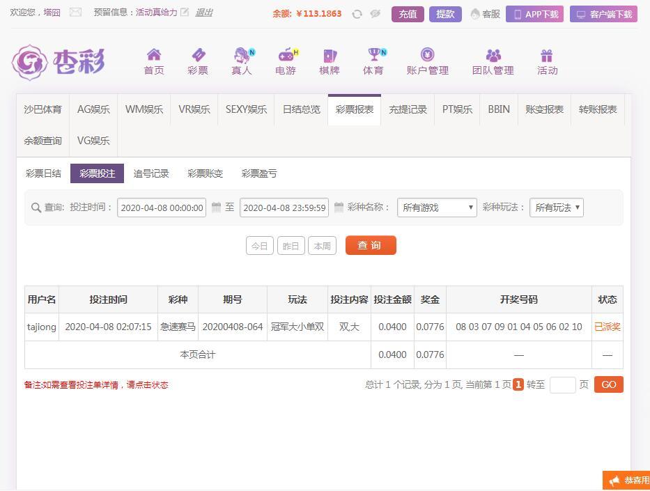 玩了注急速赛马 命中了