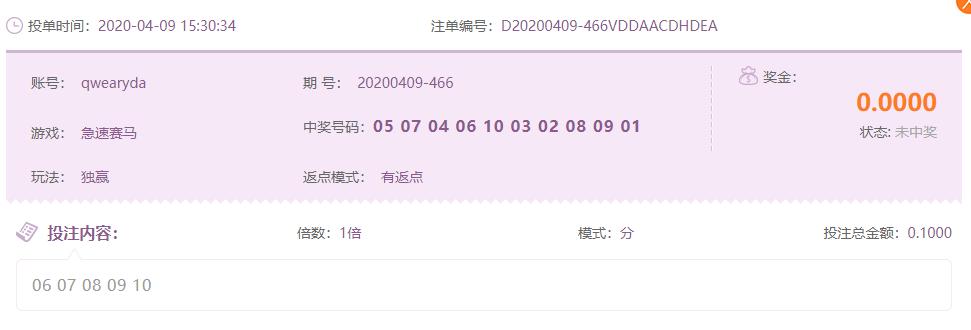 急速赛马独赢未中奖