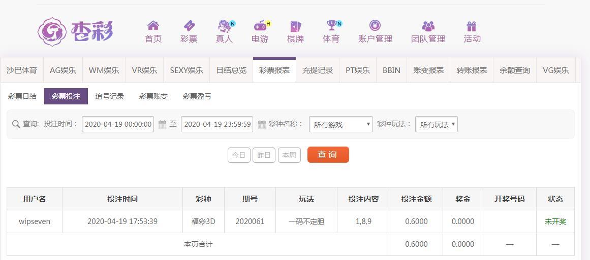 今天投注的福彩3D彩票