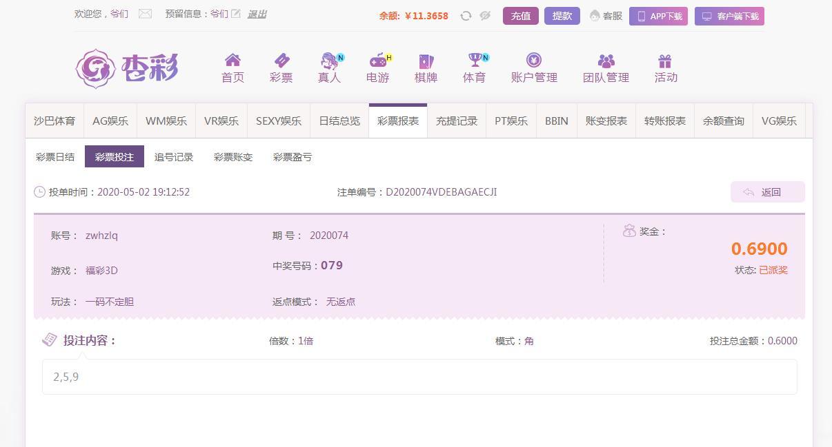 福彩3D中1码