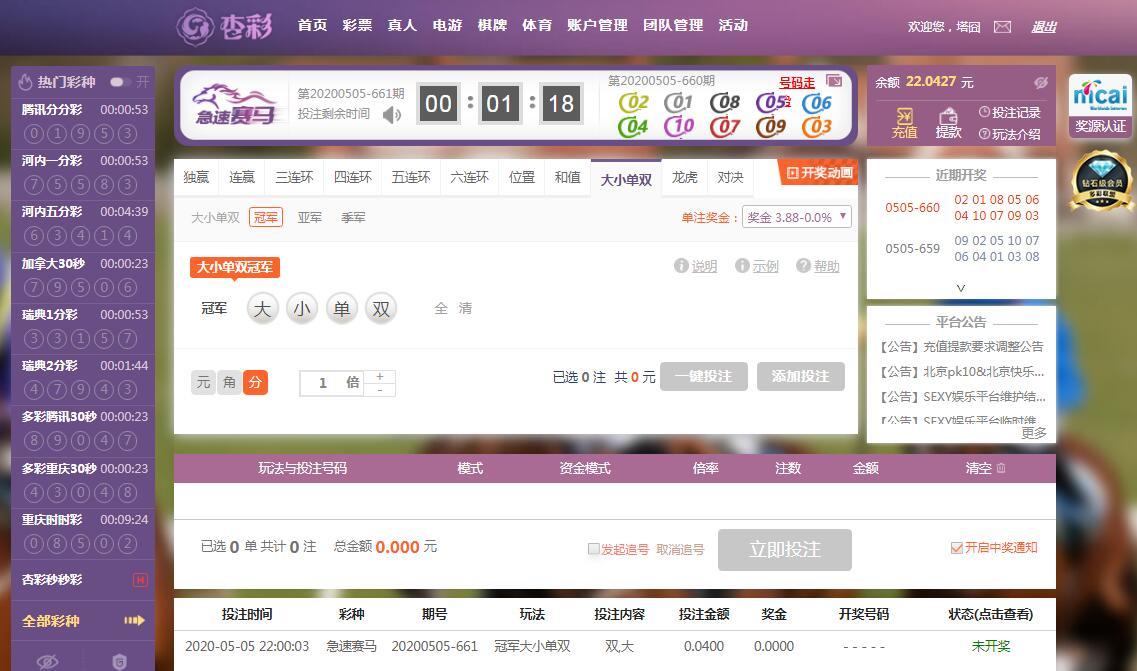 [讨论区] 下了注急速赛马 试试水了 |