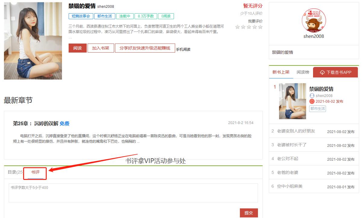 [互动交流] [书吧活动]好书限免分享 第07期 《禁锢的爱情》2021-08-27 更新至 第306章:深入虎穴,沉婷前往省城 |