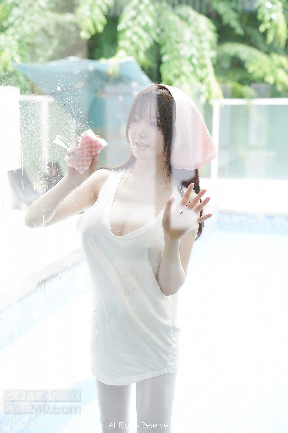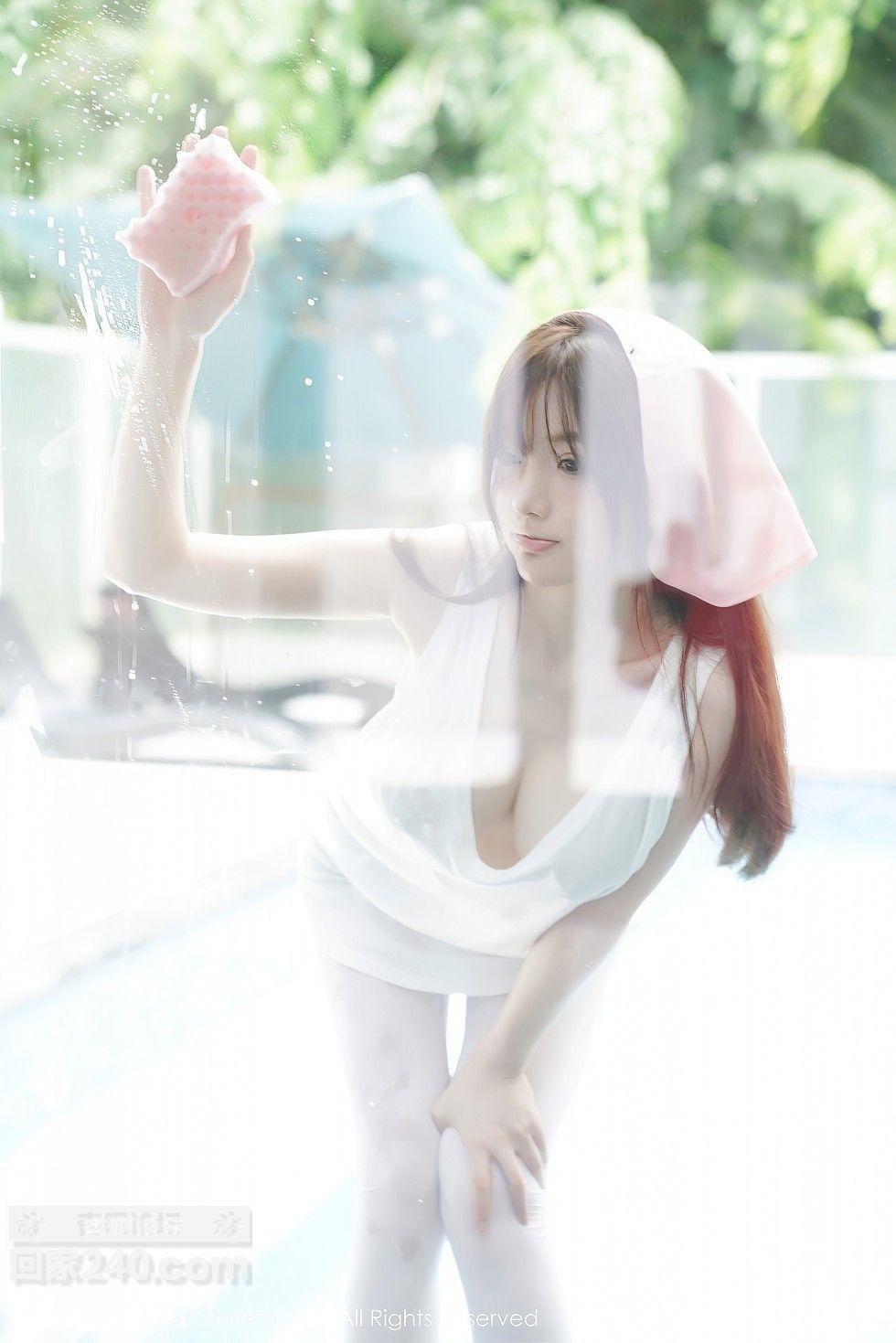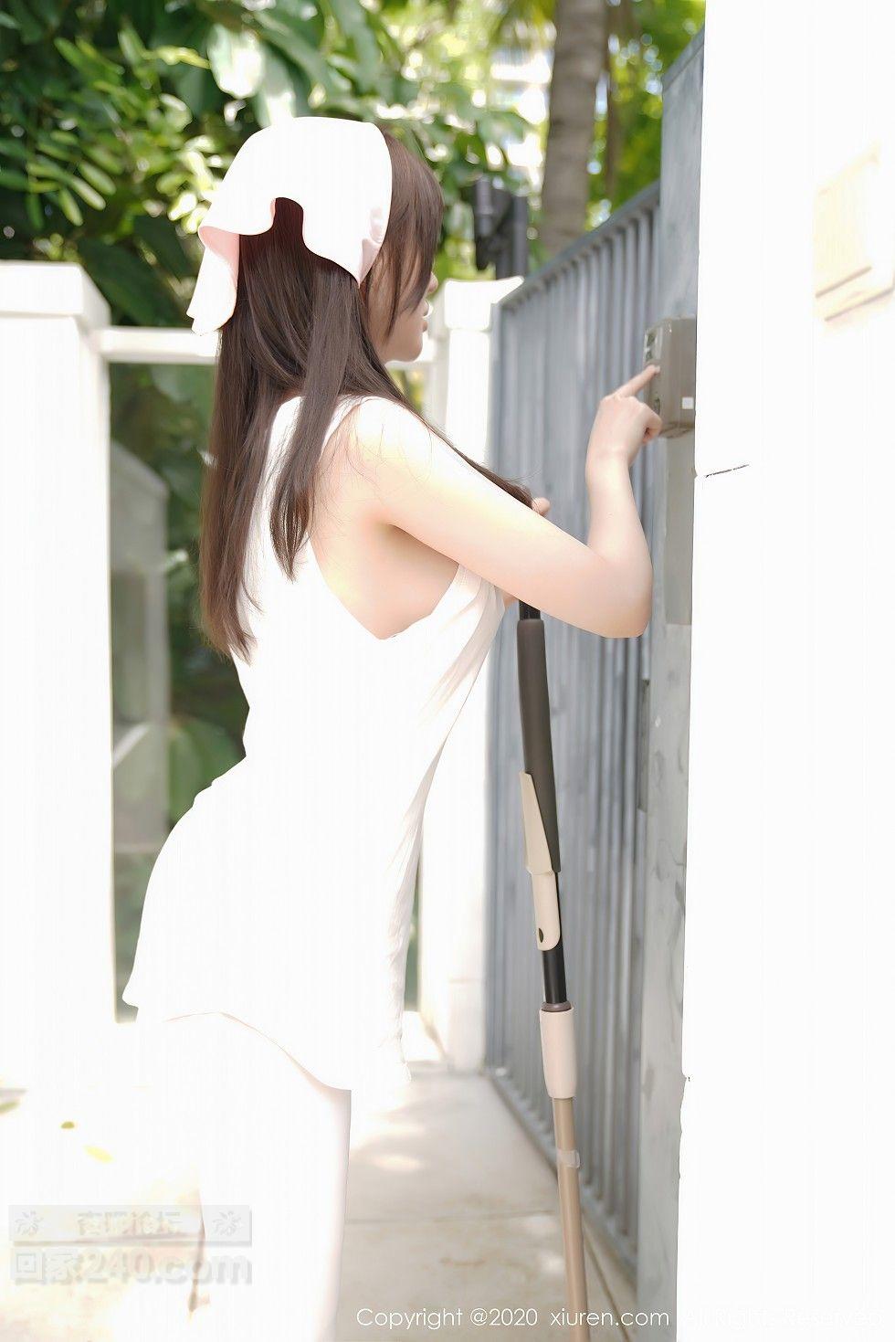 [美腿翘臀] 女神糯美子Mini性感家政女仆主题超薄无内白丝裤袜极致诱惑写真【50P】 |