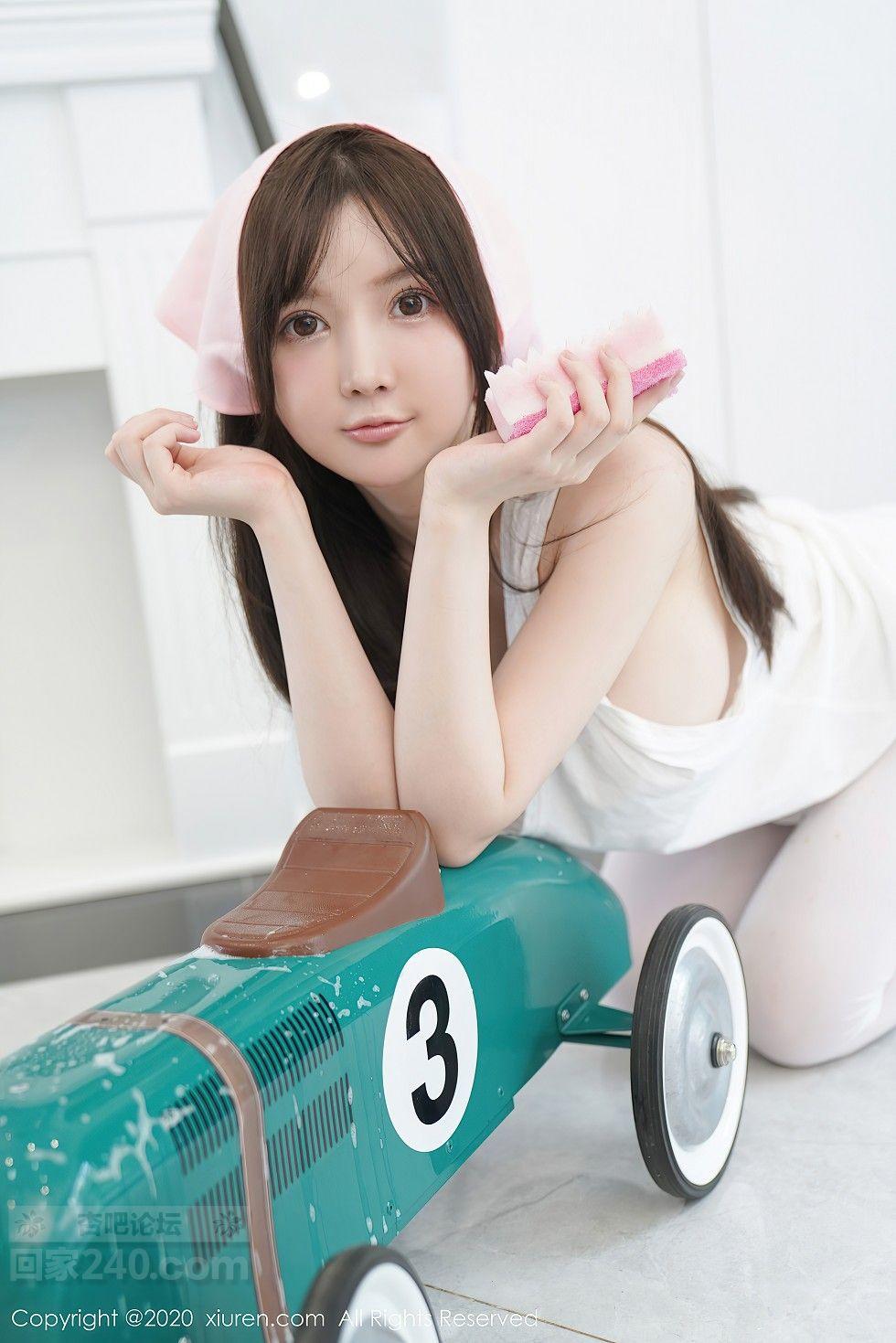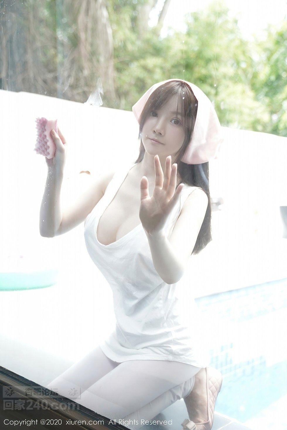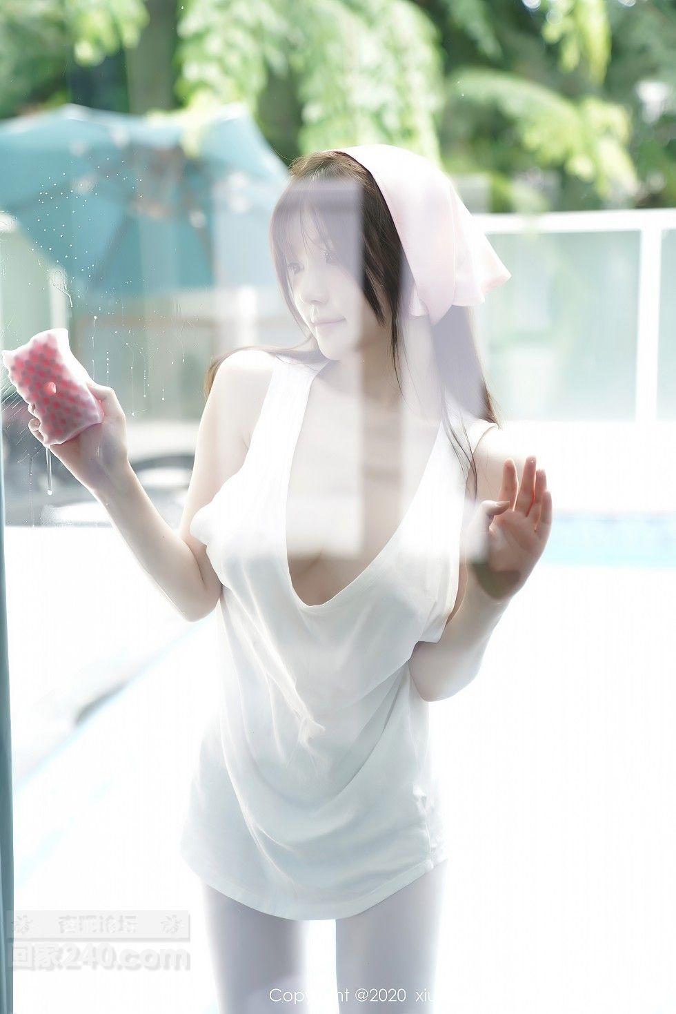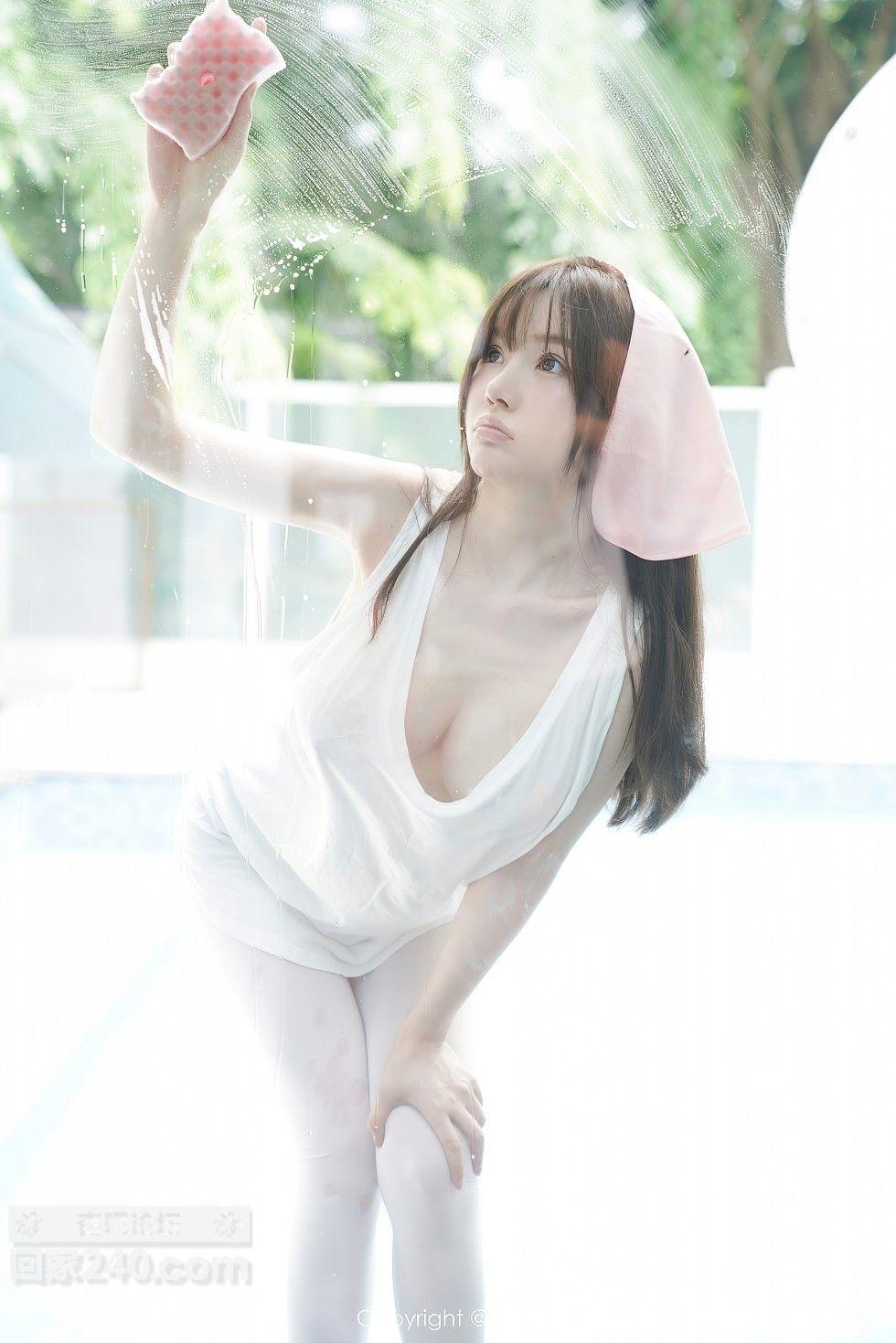 [美腿翘臀] 女神糯美子Mini性感家政女仆主题超薄无内白丝裤袜极致诱惑写真【50P】 |