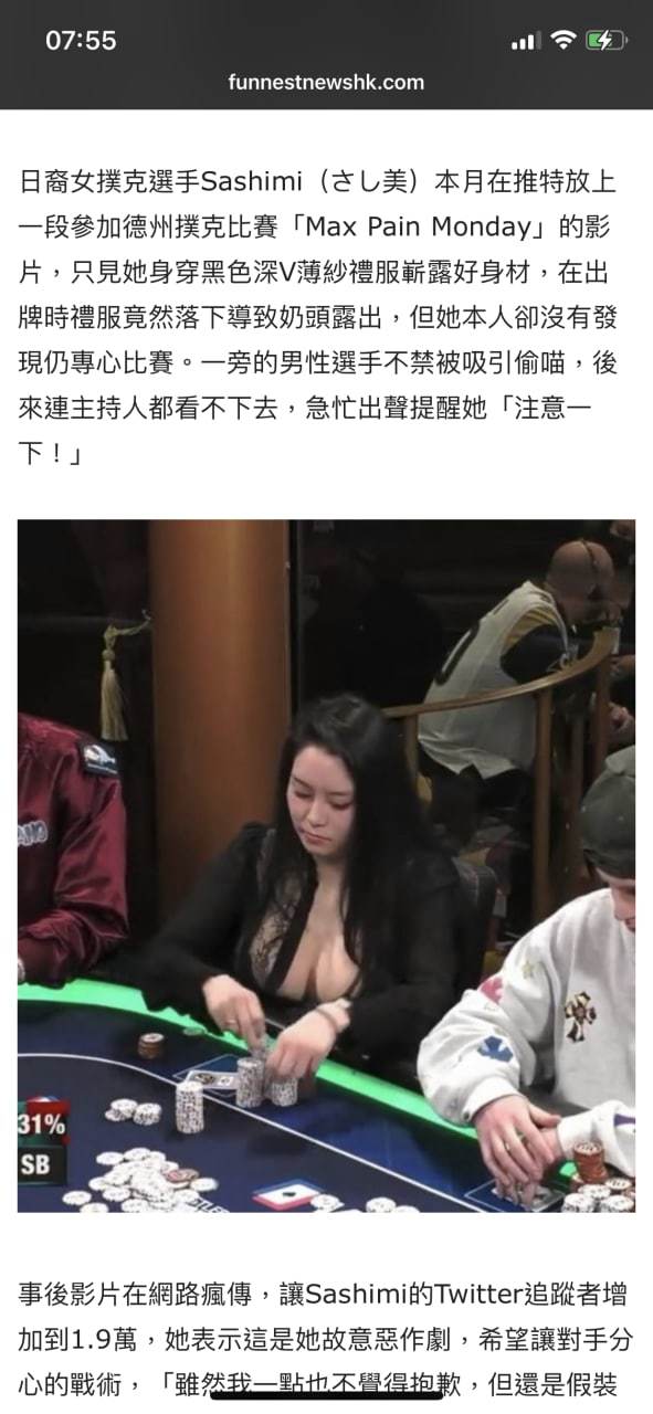 日裔女选手POKER比赛露点色诱对手分心爆红网络
