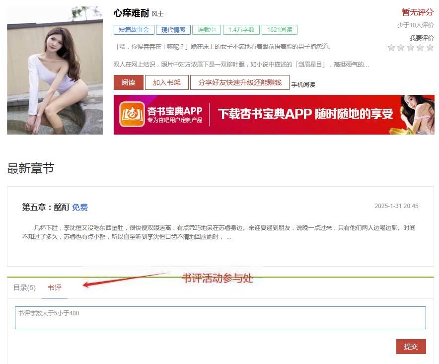[公告/活动] [书吧活动]好书限免分享 第92期《心痒难耐》 参与书评就得50贡献 |