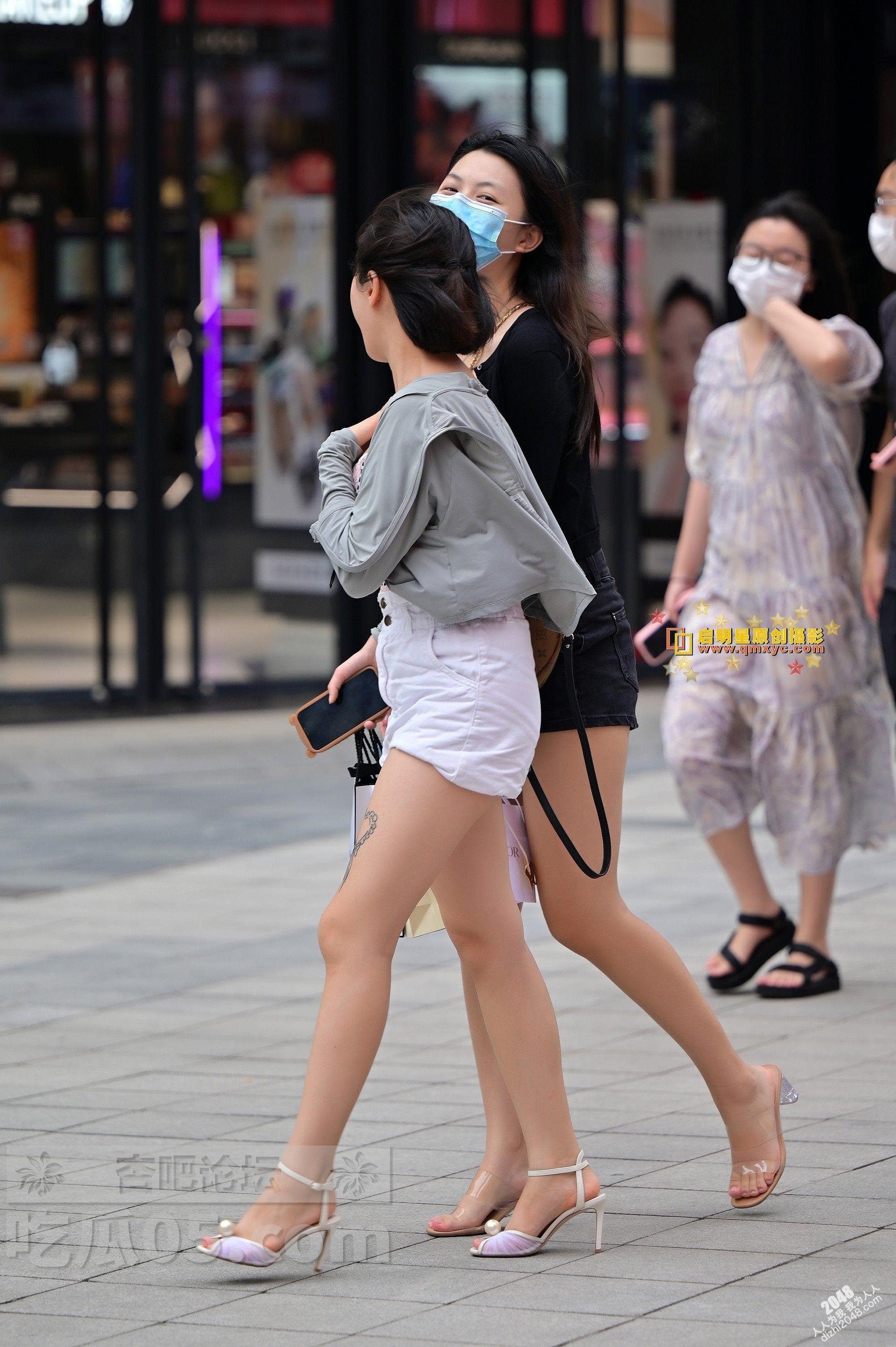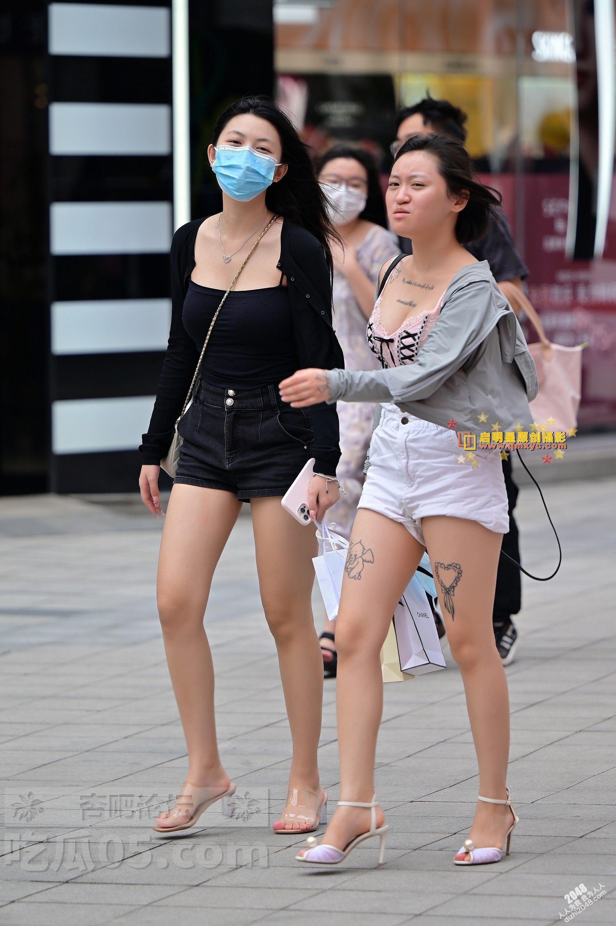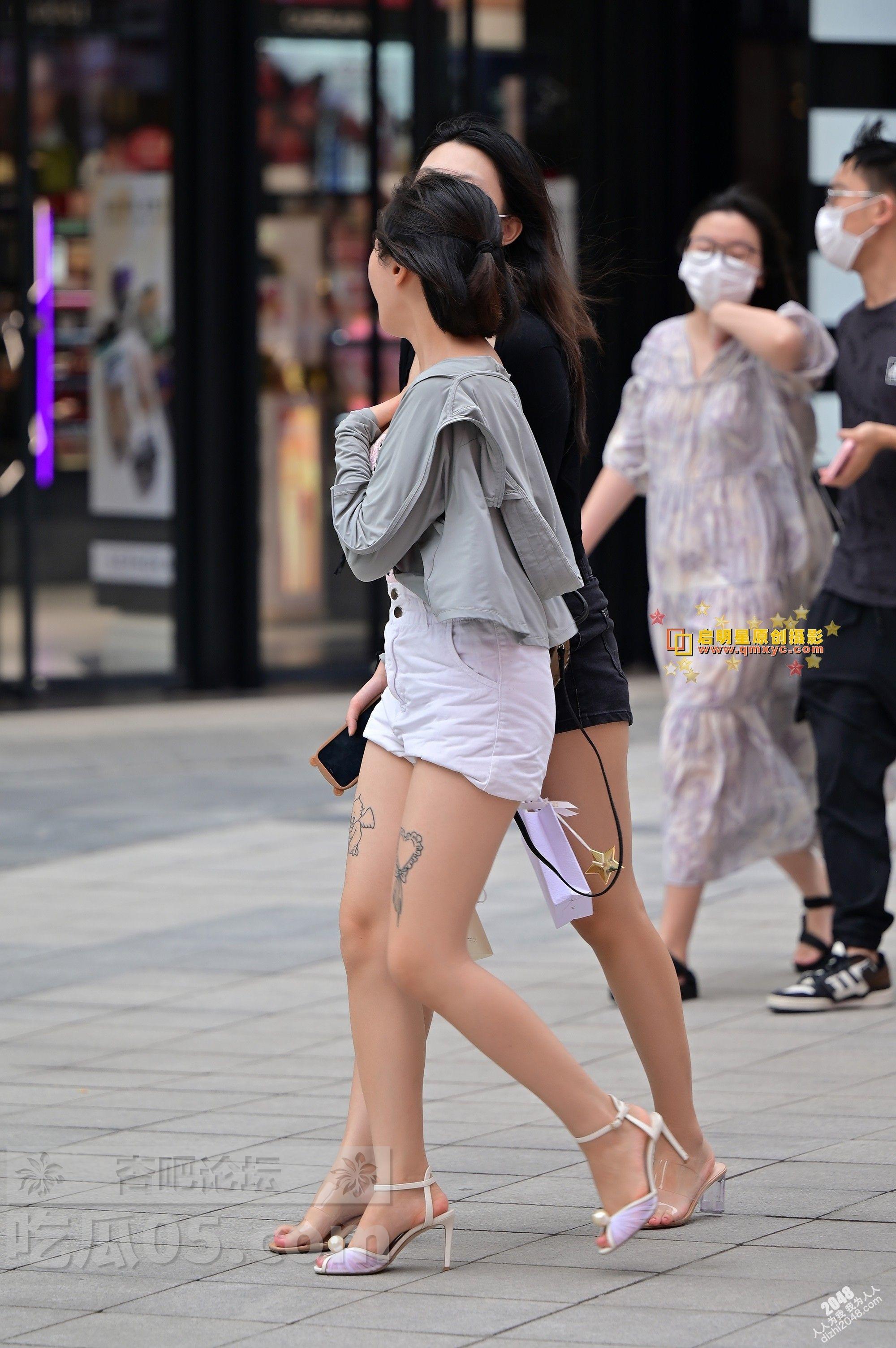 白色短裤纹身美腿开发妹子和黑色短裤身材高挑闺蜜逛街【10P】