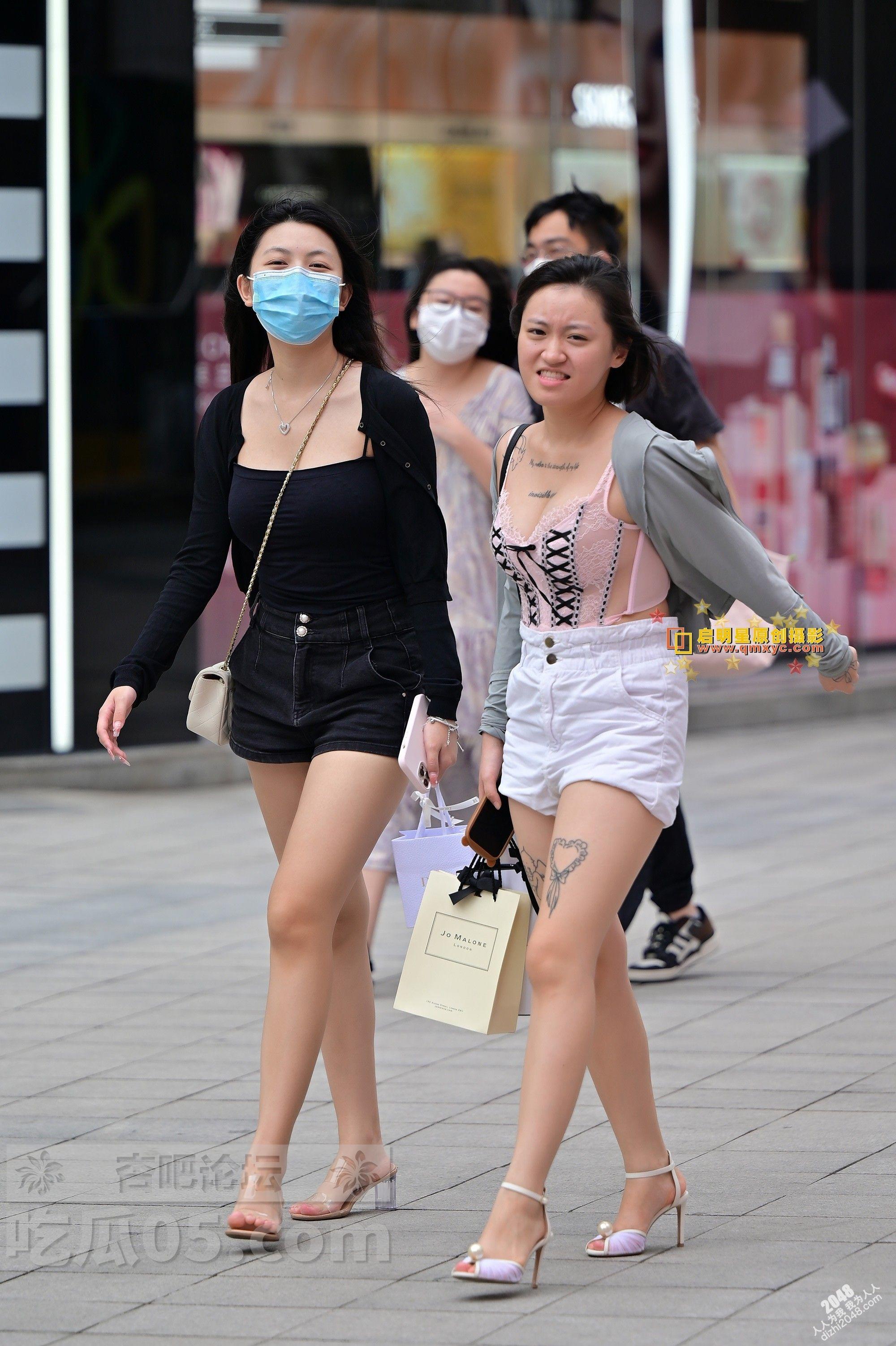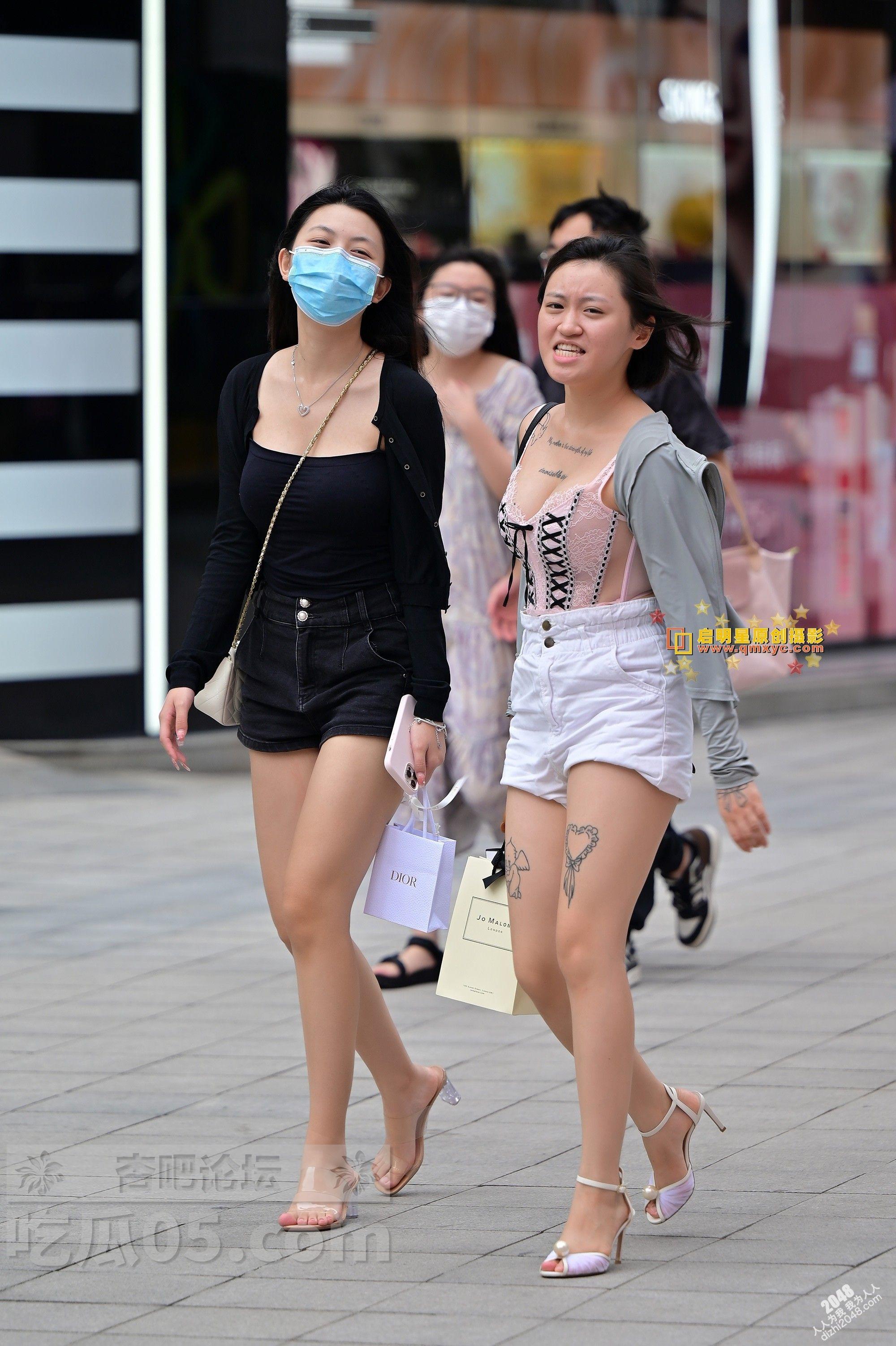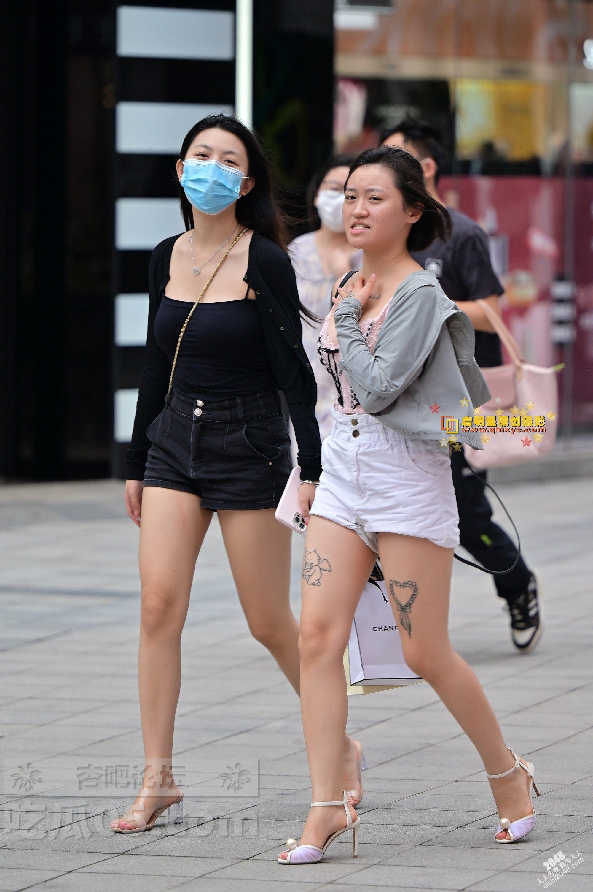 白色短裤纹身美腿开发妹子和黑色短裤身材高挑闺蜜逛街【10P】