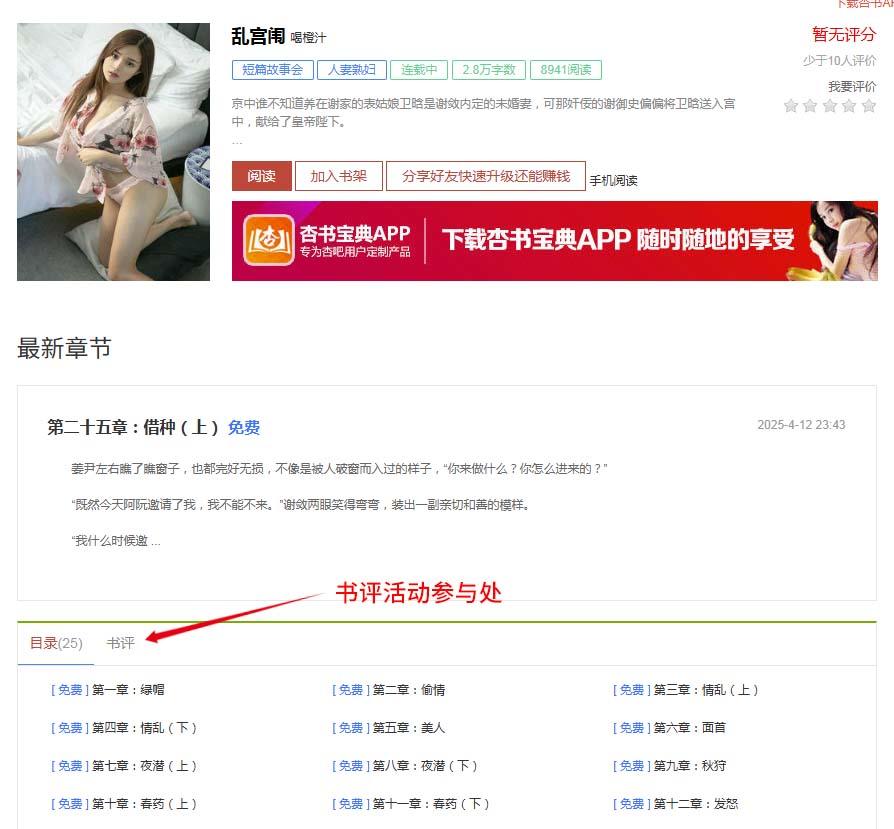 [公告/活动] [书吧活动]好书限免分享 第97期《乱宫闱》 参与书评就得50贡献 |