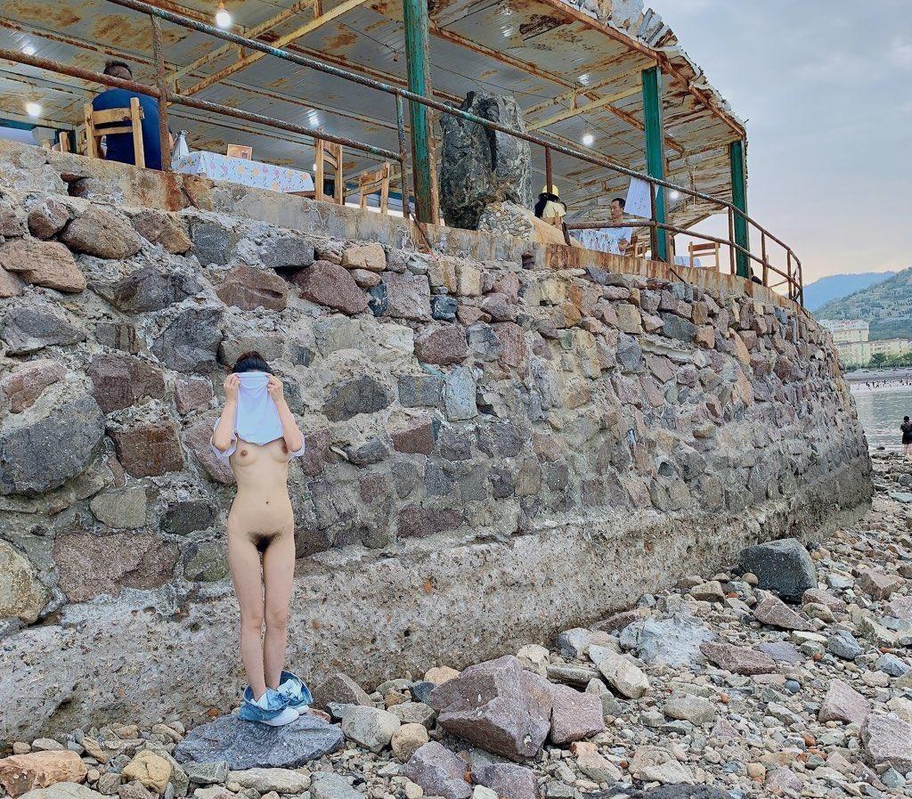 少女野外露出圆润的屁股【14P】