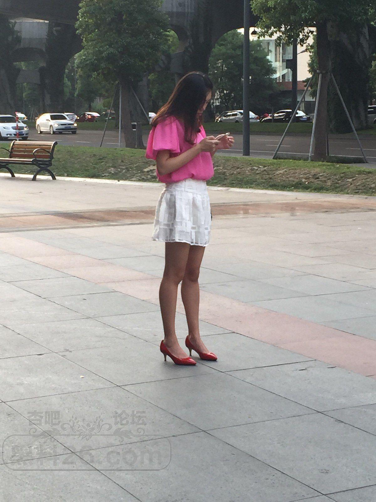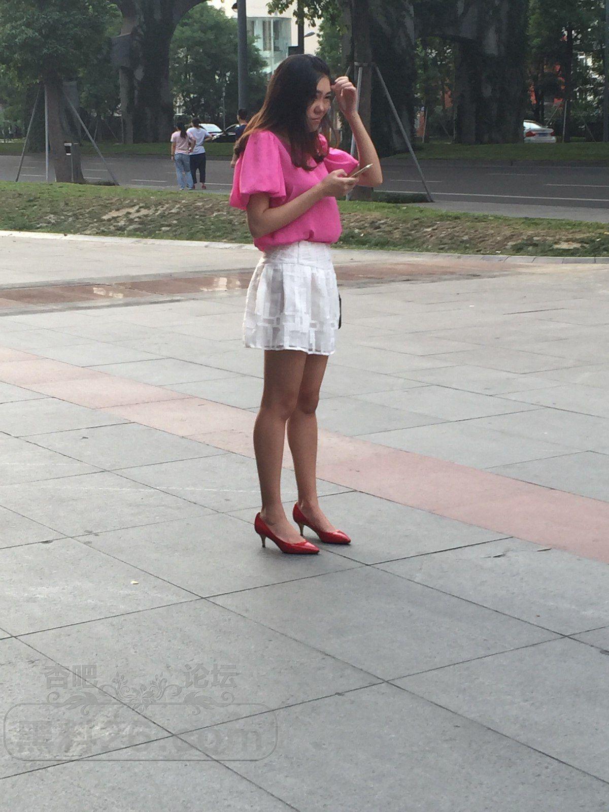 [街拍] 夕阳下火锅店门口等人的粉衣白裙美眉:嫩嫩白腿,红高亮眼【27P】 |