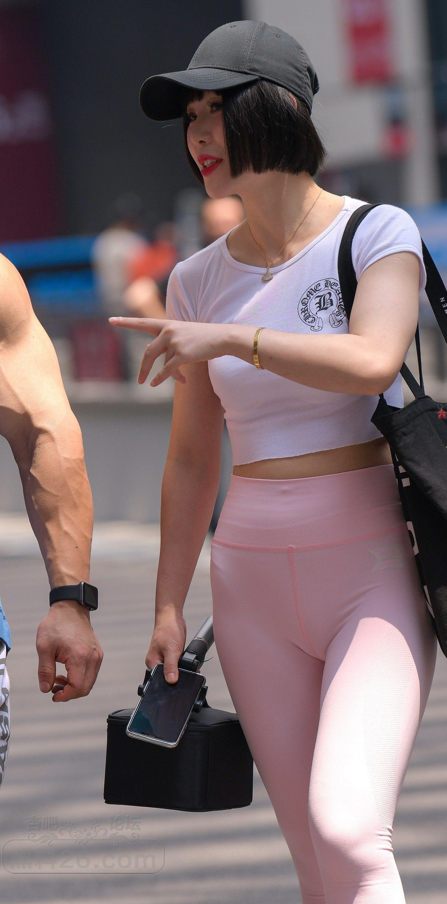 白色短袖粉色紧身瑜伽裤美女教练下班了【10P】