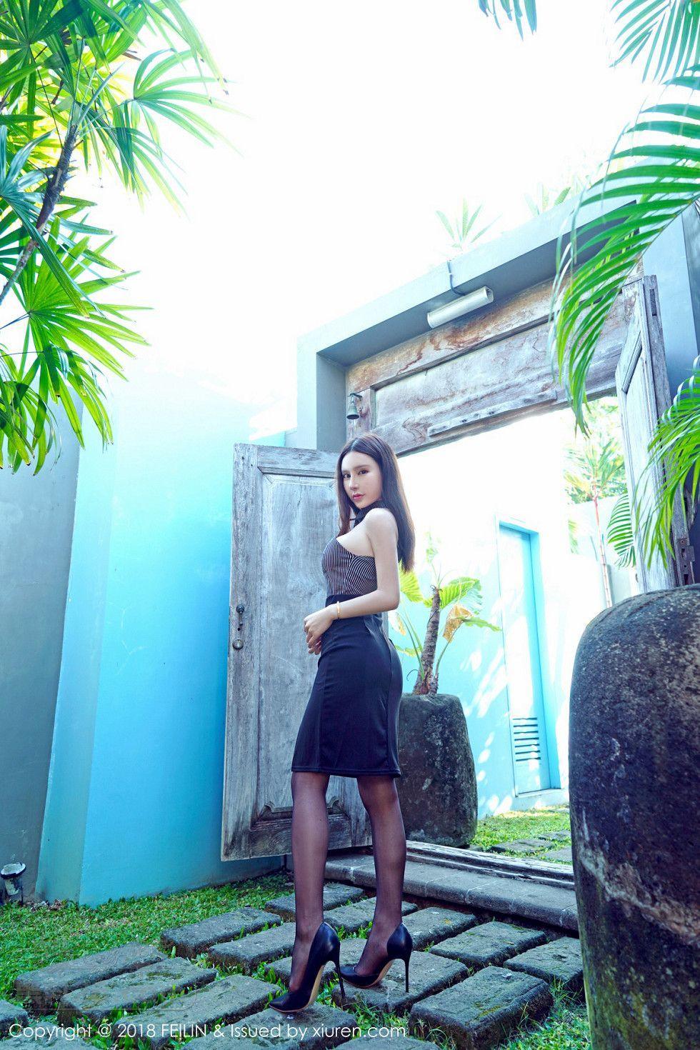 [美腿翘臀] 女神周于希户外OL黑丝装扮撩裙无内黑丝裤袜火辣诱惑写真【40P】 |
