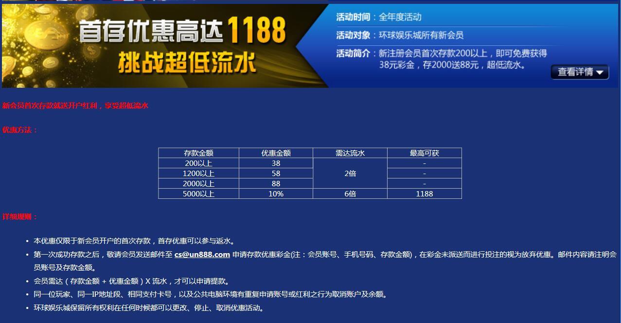 [|热门白菜] 环球娱乐城,首存优惠高达1188,挑战超低流水。 |