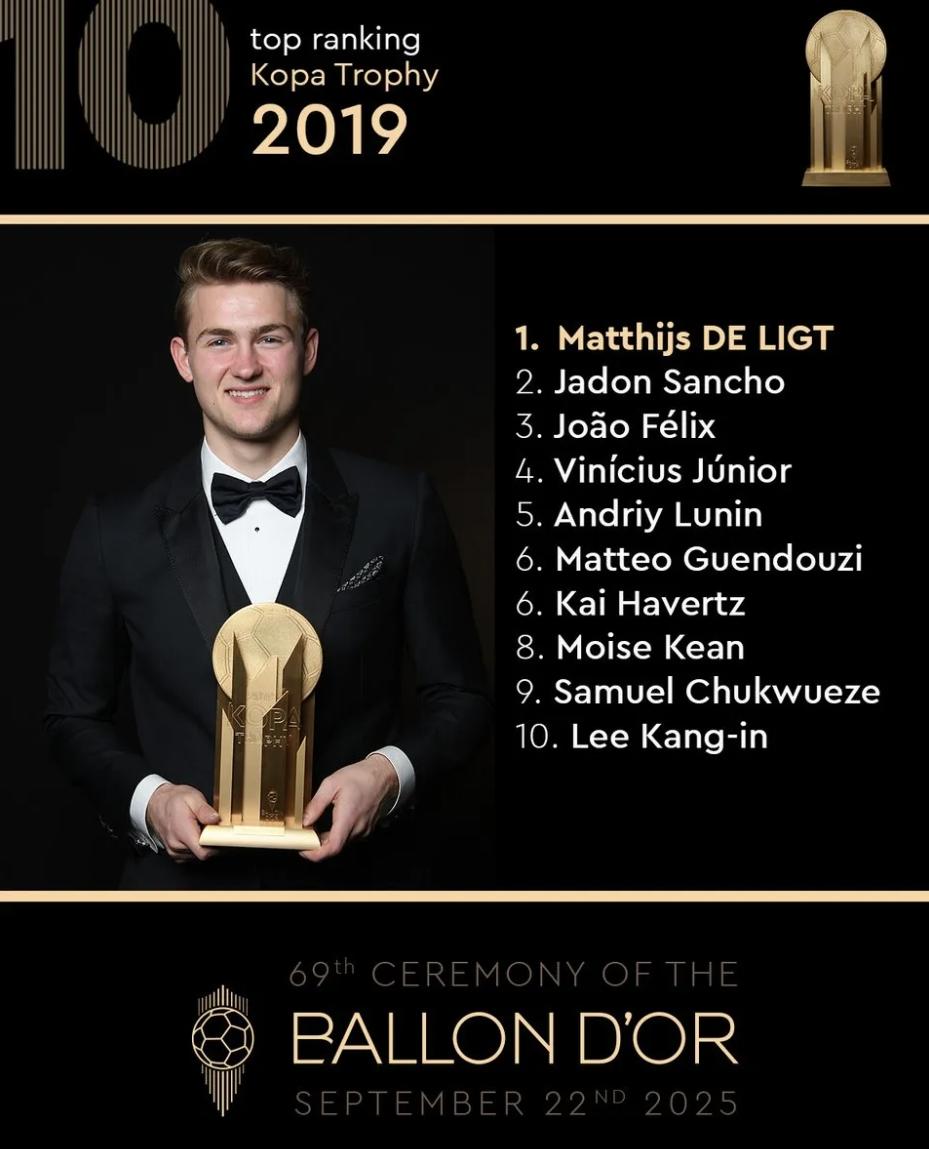 金球奖回顾2019年科帕奖前十,德里赫特领衔,桑乔在列