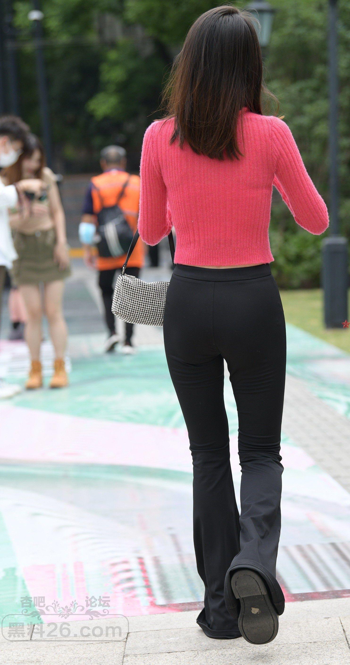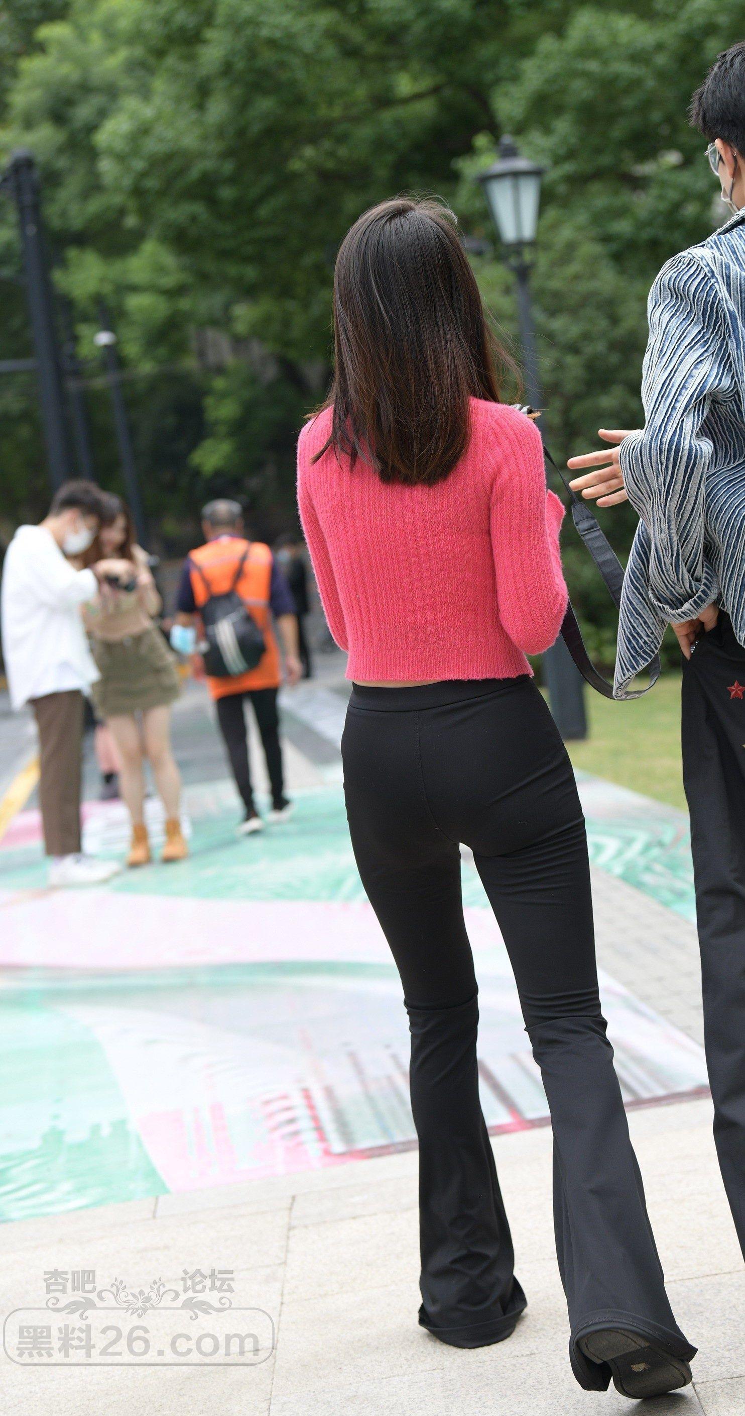 粉色上衣黑色紧身牛仔裤妹子公园游览曲线优美【10P】