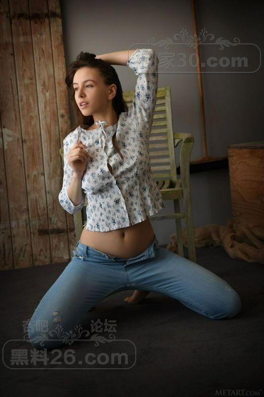 牛仔紧身裤真空上衣长发美女赤裸胴体似画中女神【20P】