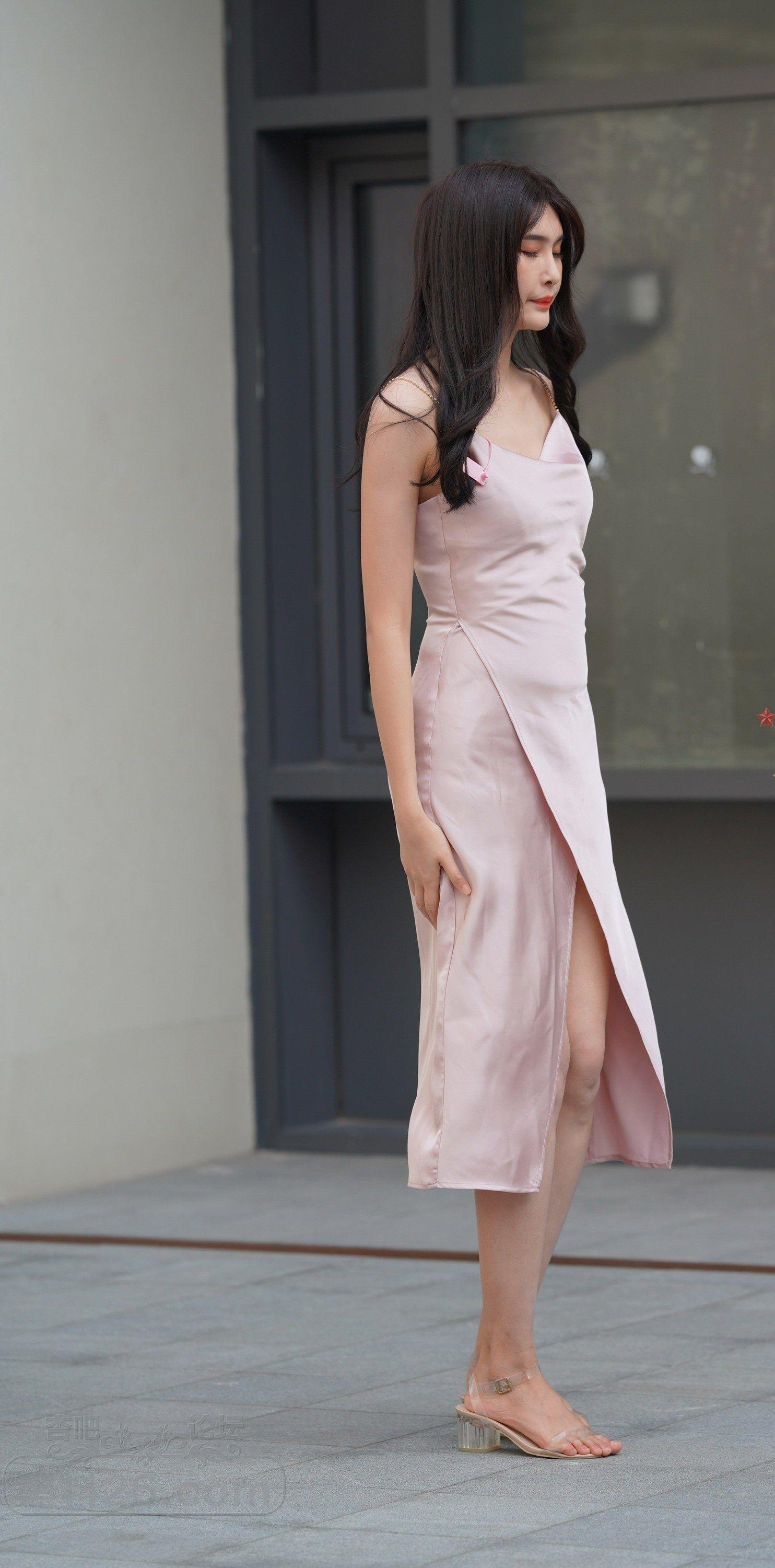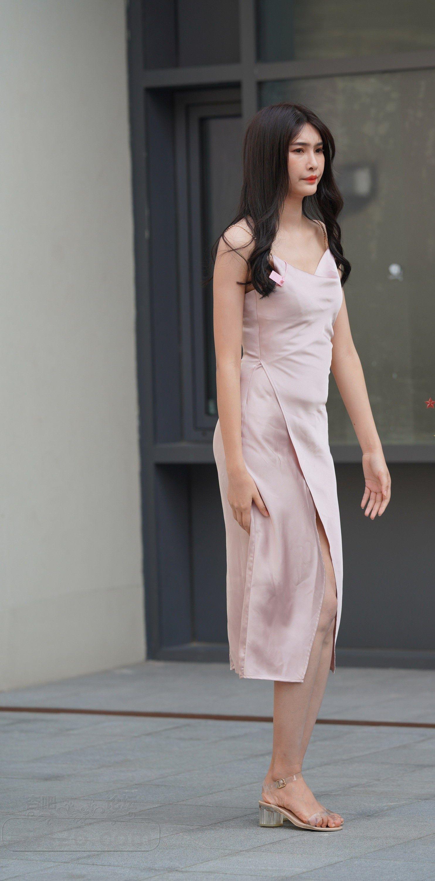 白色吊带开叉裙长发美女街上偶遇一双大长腿诱人【10P】