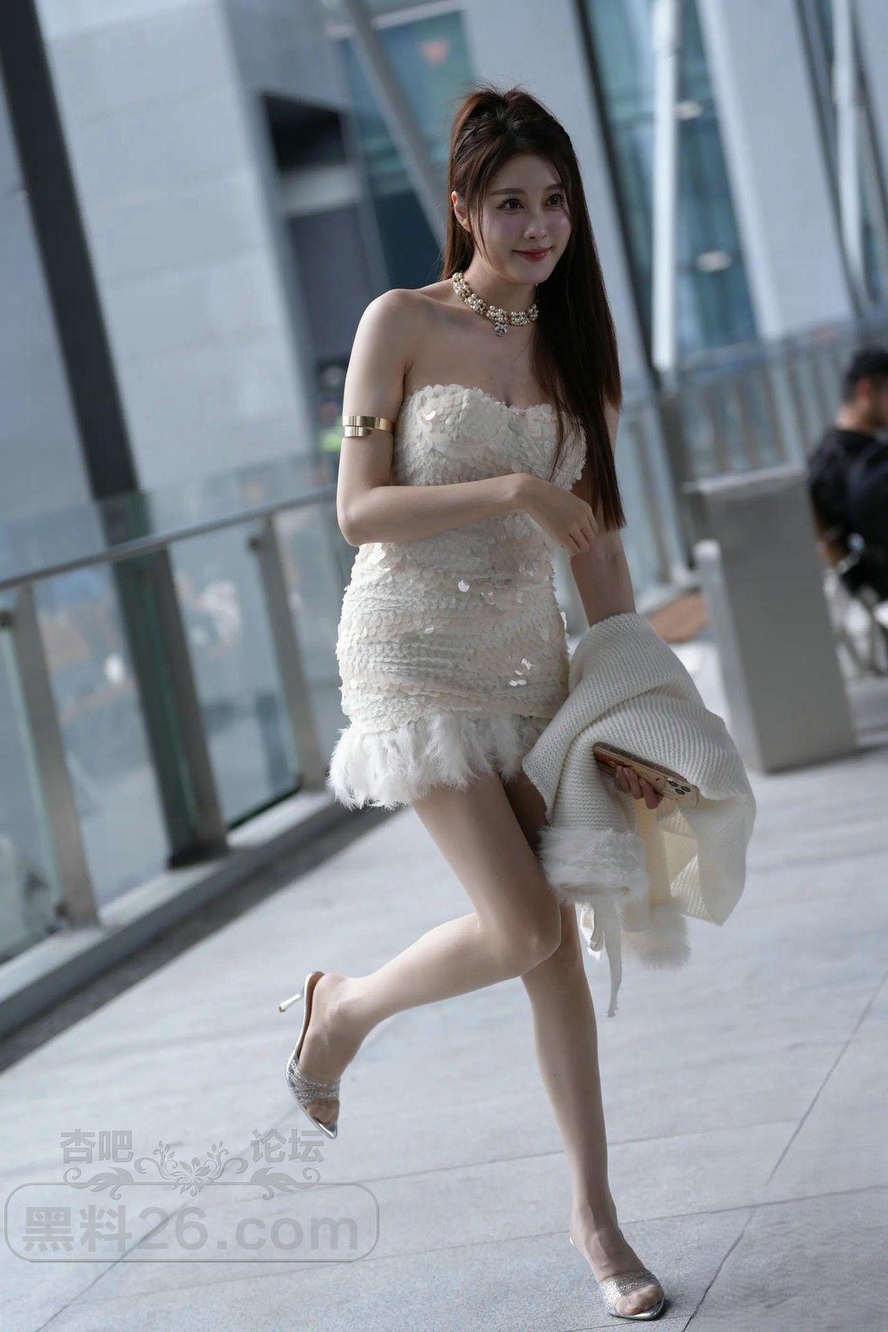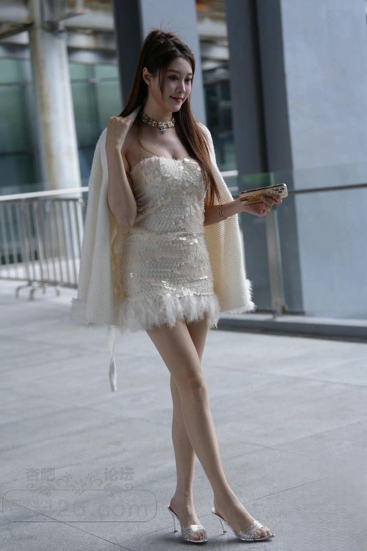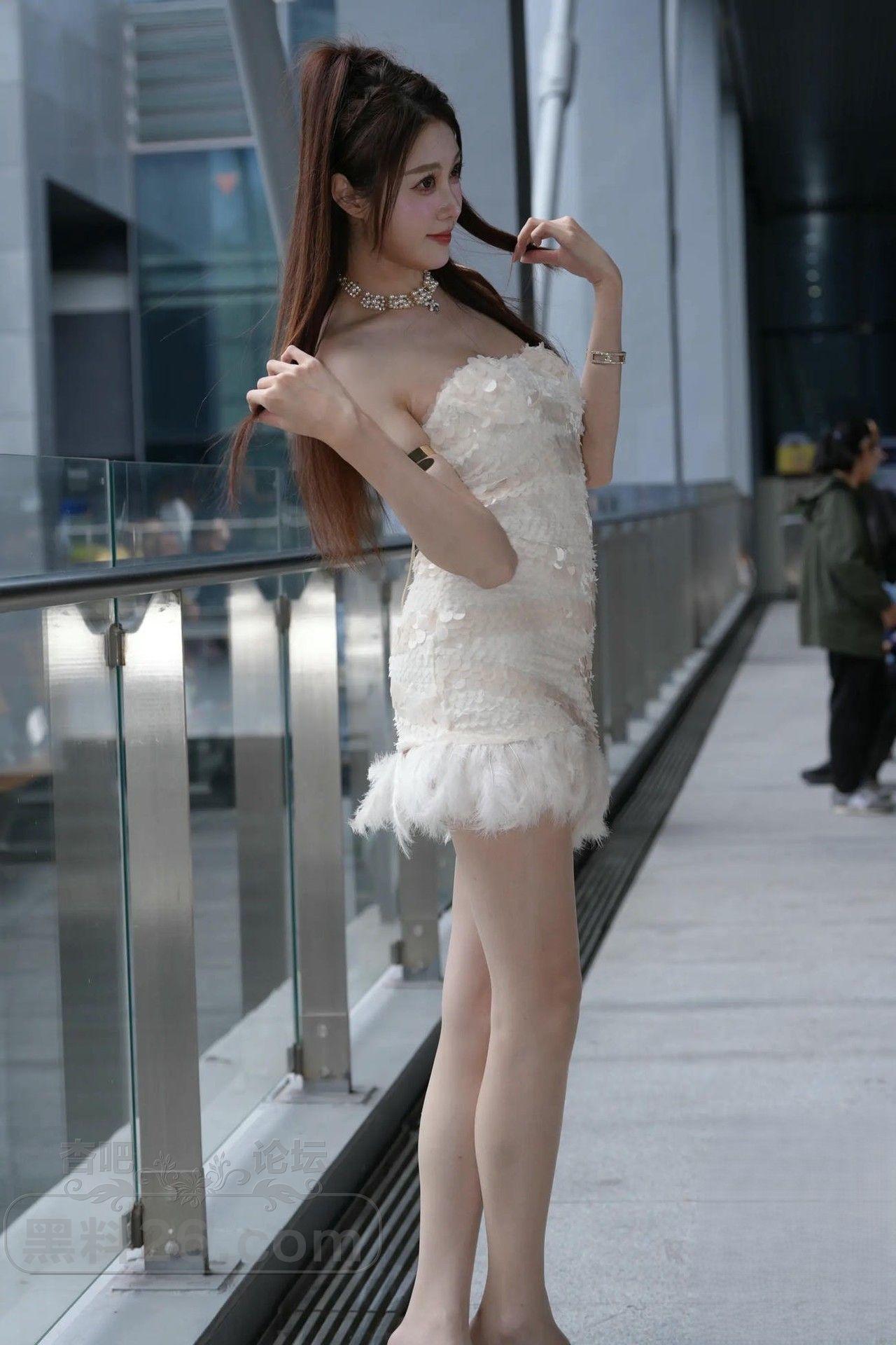 小姐姐的这套低胸连衣短裙富丽堂皇,白嫩的肩、臂、胸,白嫩的大长腿美足非常漂亮。
