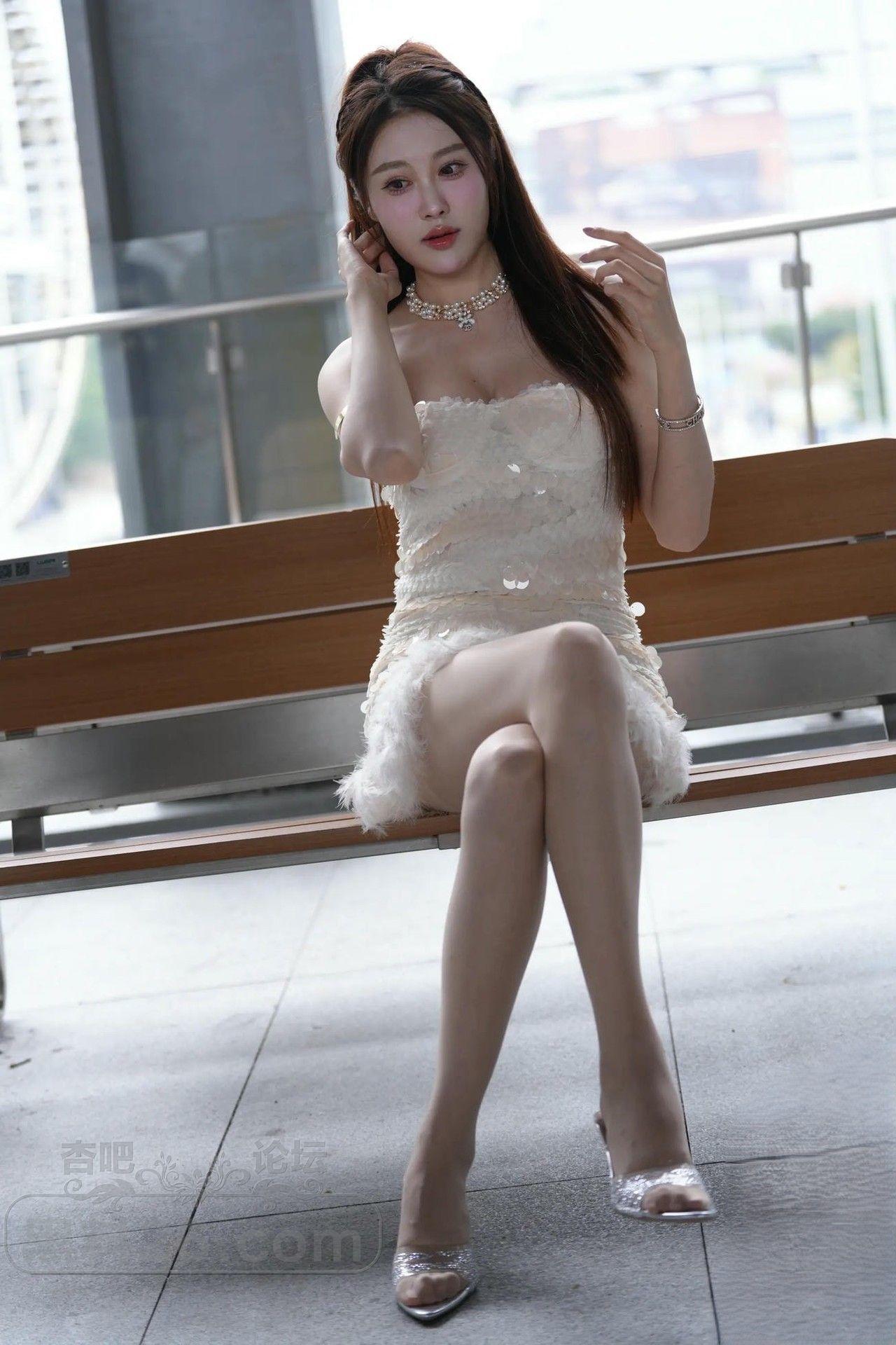 高挑美女肉丝高跟抹胸白短裙性感又优雅【29P】
